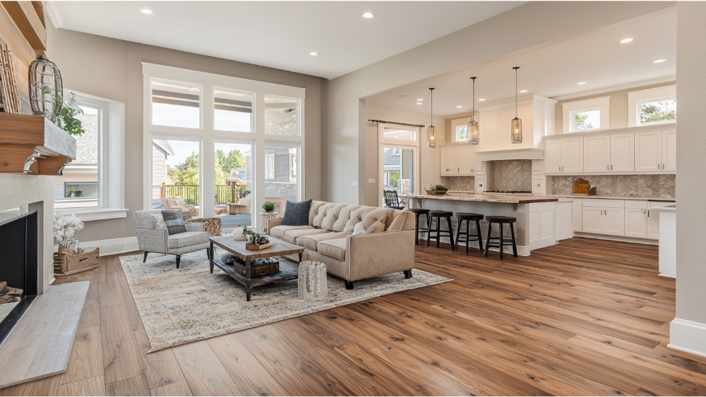 Seamless integration of flooring, color, and architectural elements to elevate your home